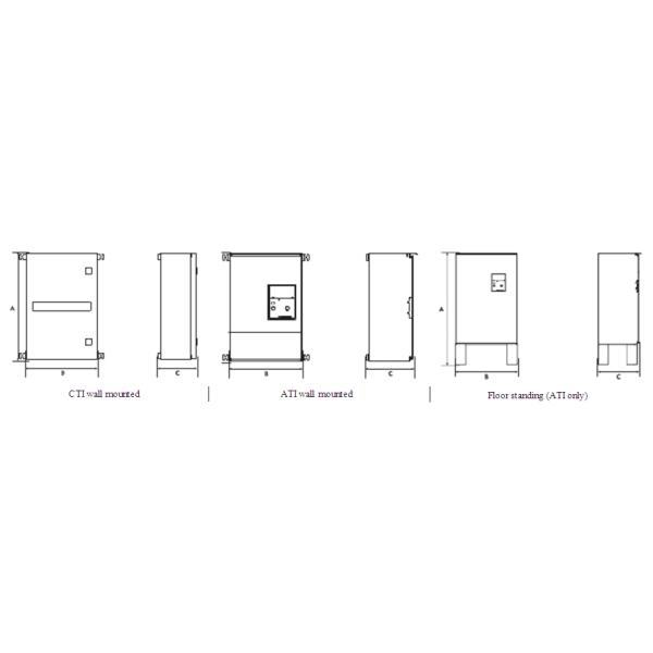 *Floor standing. †Dimension A for the top cable entry model will change to 1350 mm (53.1 in)